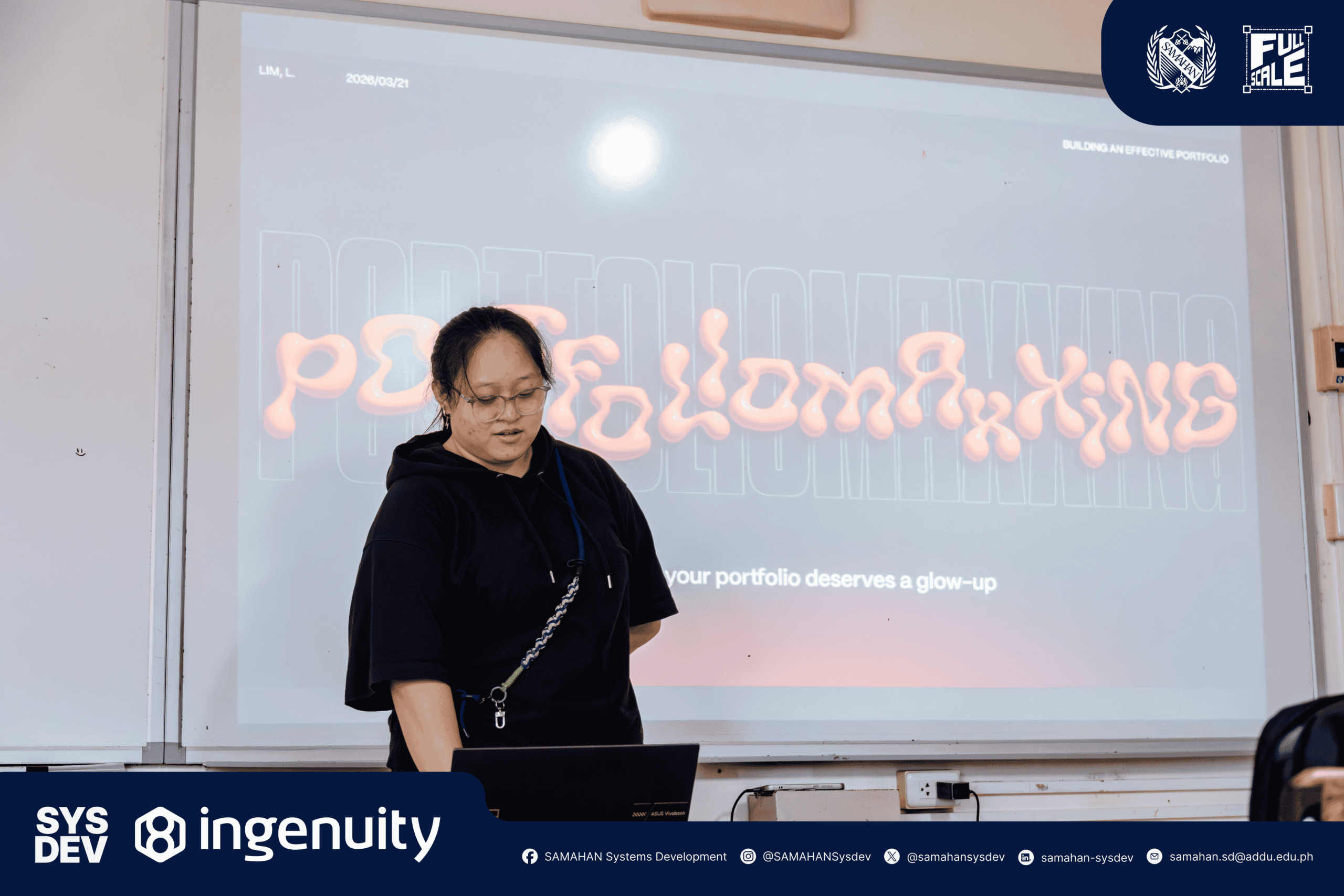 SAMAHAN SysDev, the organization responsible for building digital systems for different departments, invited me to give a talk on building an effective design portfolio. The audience was a mix: designers preparing for internships, and a handful of developers curious about how portfolios translate across disciplines.
